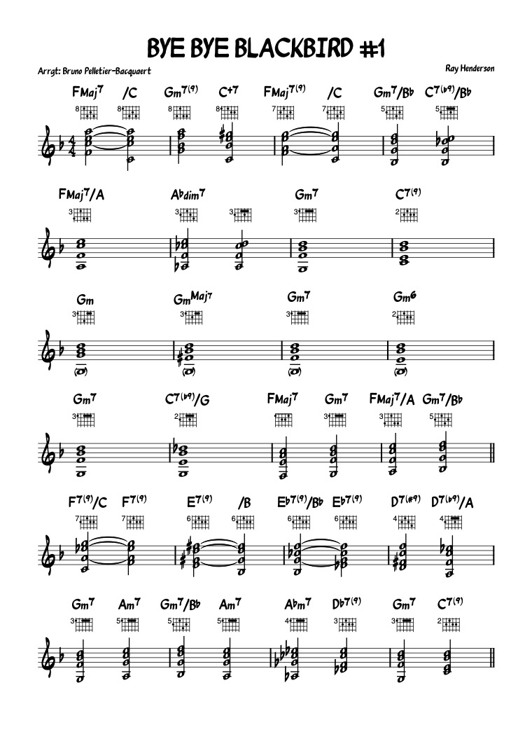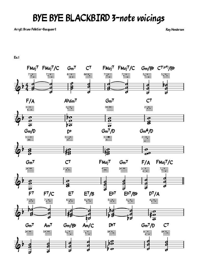 Once you are comfortable with the 3-note voicings above, you are ready to tackle the next study (BYE BYE BLACKBIRD #1) which now uses full-voicings: