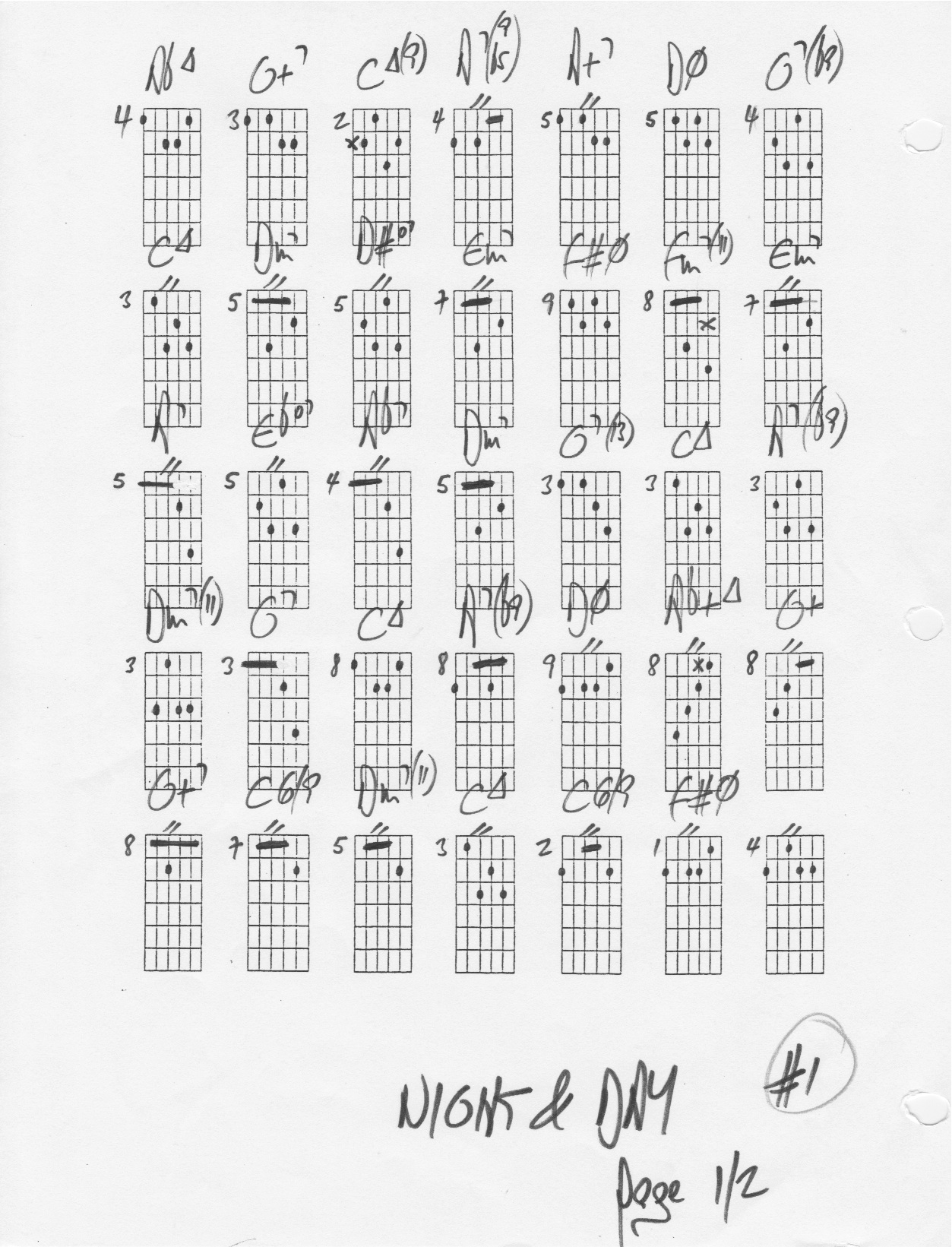Order 3 chord studies for "Night And Day" written in diagram form (similar to the ones presented on this page.)