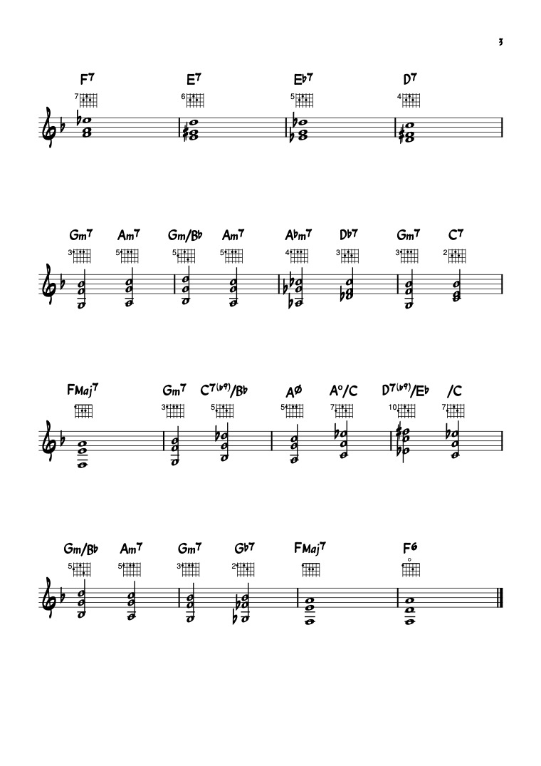 Here are a couple of chord studies for this great song by Ray Henderson. Those are "comping" studies, meaning that they are meant to be played as accompaniment.