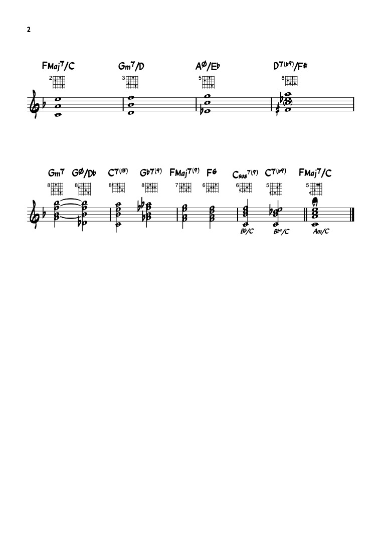 Both choruses use inversions of the shell-voicings.